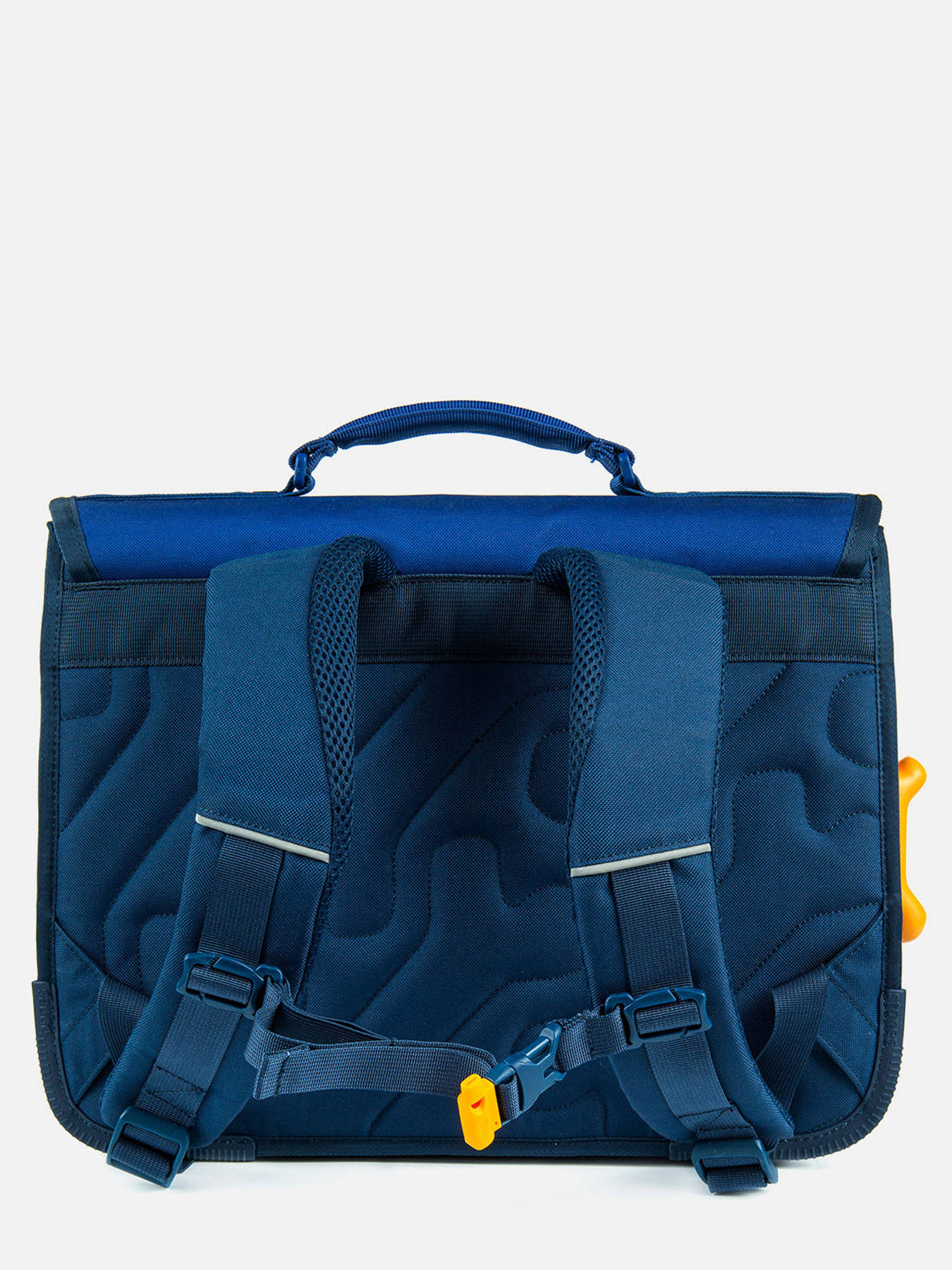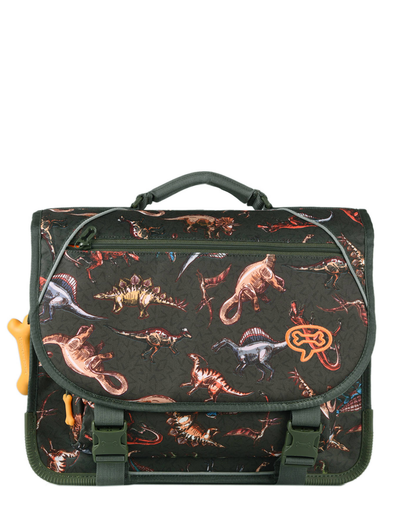 38 cm - 15 litres - 0.88 kg ~ Cartable garçon 38 cm de la marque Stones and Bones. Ce cartable enfant est idéal pour le CP, CE1 et CE2. Il se divise en deux compartiments et peut contenir les formats cahiers A4 et 24x32cm. On retrouve à l'intérieur une petite poche à fermeture zippée. Pratique, il dispose de deux poches à fermeture éclair sur le devant (sous et sur le rabat), idéales pour un petit goûter ou l'agenda. Petit plus, ce cartable dispose d'une étiquette nom. Le fond et les angles du cartable sont renforcés pour plus de solidité et des bandes réfléchissantes sont disposées autour du sac et sur les bretelles. Conçu pour le confort des enfants, le dos et les bretelles sont rembourrés.