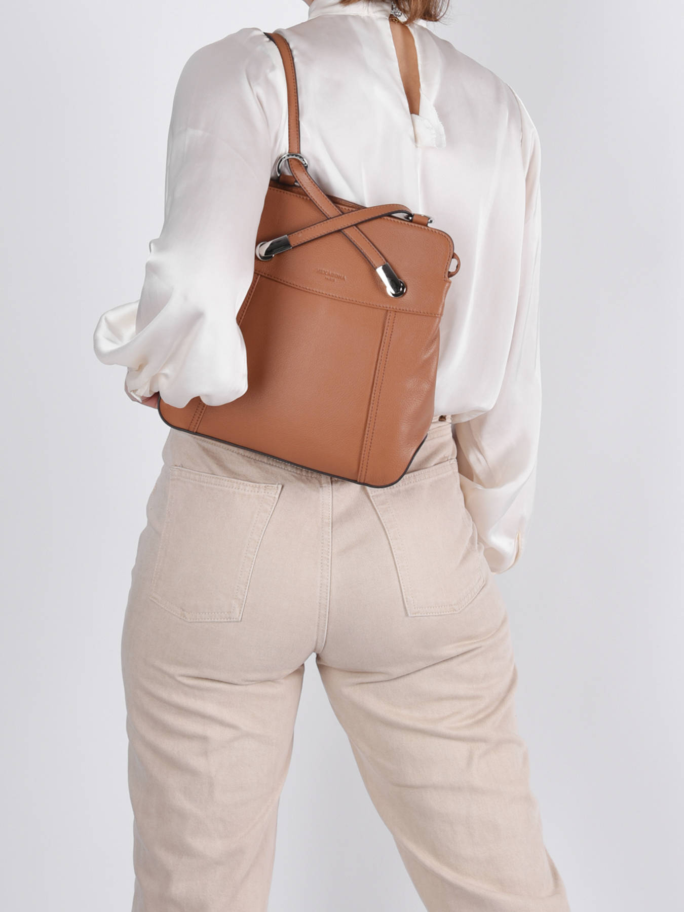 Se porte à la fois sur l'épaule et sur le dos. Le petit plus de ce sac ! Très classe et très beau !
