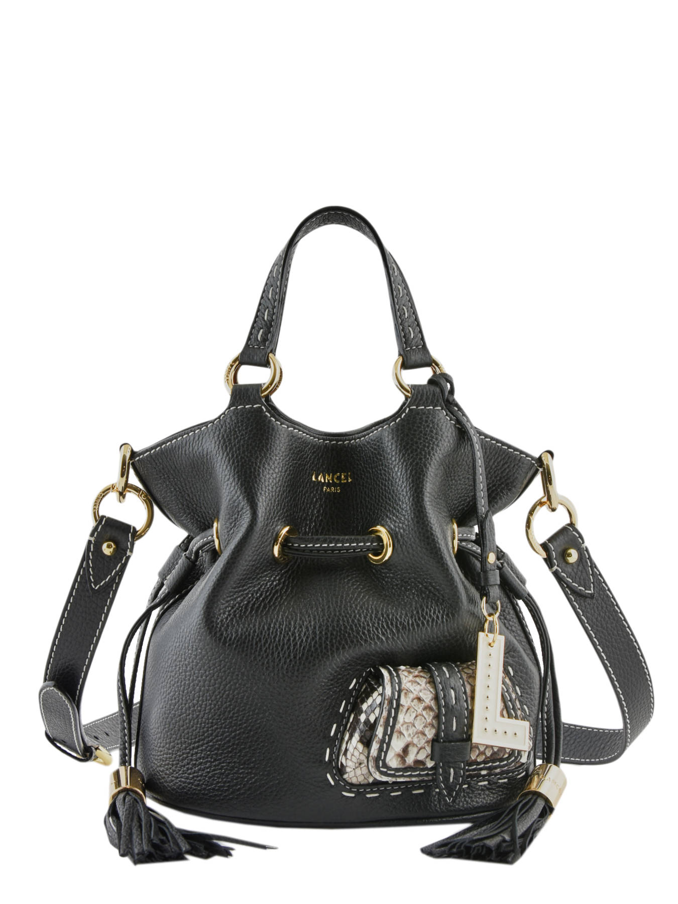 Pour vous accompagner lors d'une soirée entre copines, rien de tel que le sac seau Premier Flirt Python de chez Lancel.