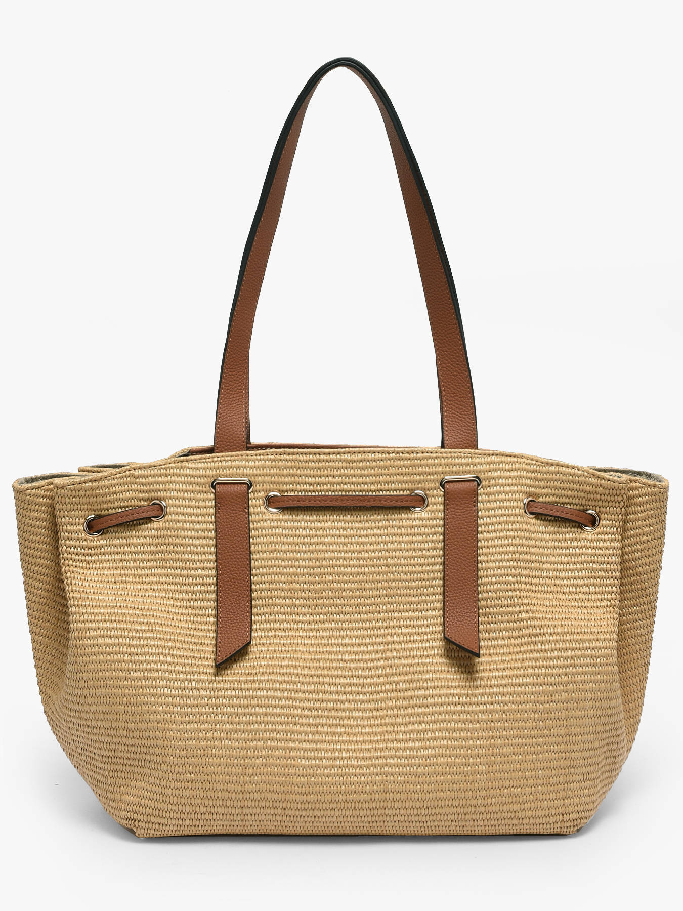 The BRUMBY ESTIVAL shoulder bag from ETRIER is crafted from polypropylene with leather trim, offering a lightweight and elegant summer style. The polypropylene textures takes center stage in the design, bringing a natural and fresh touch, while the cowhide leather accents add refinement and durability. Its 28 cm handle allows for comfortable shoulder wear, perfect for everyday use or summer outings. Featuring a zip closure, this model stands out with its adjustable shape: the drawstring allows the bag to expand for a more relaxed, casual look or tighten for a more structured appearance. Inside, two slip pockets and a zip pocket provide optimal organization for your essentials. Both practical and stylish, the BRUMBY ESTIVAL bag is the perfect accessory to enhance a summer silhouette with natural charm and elegance.