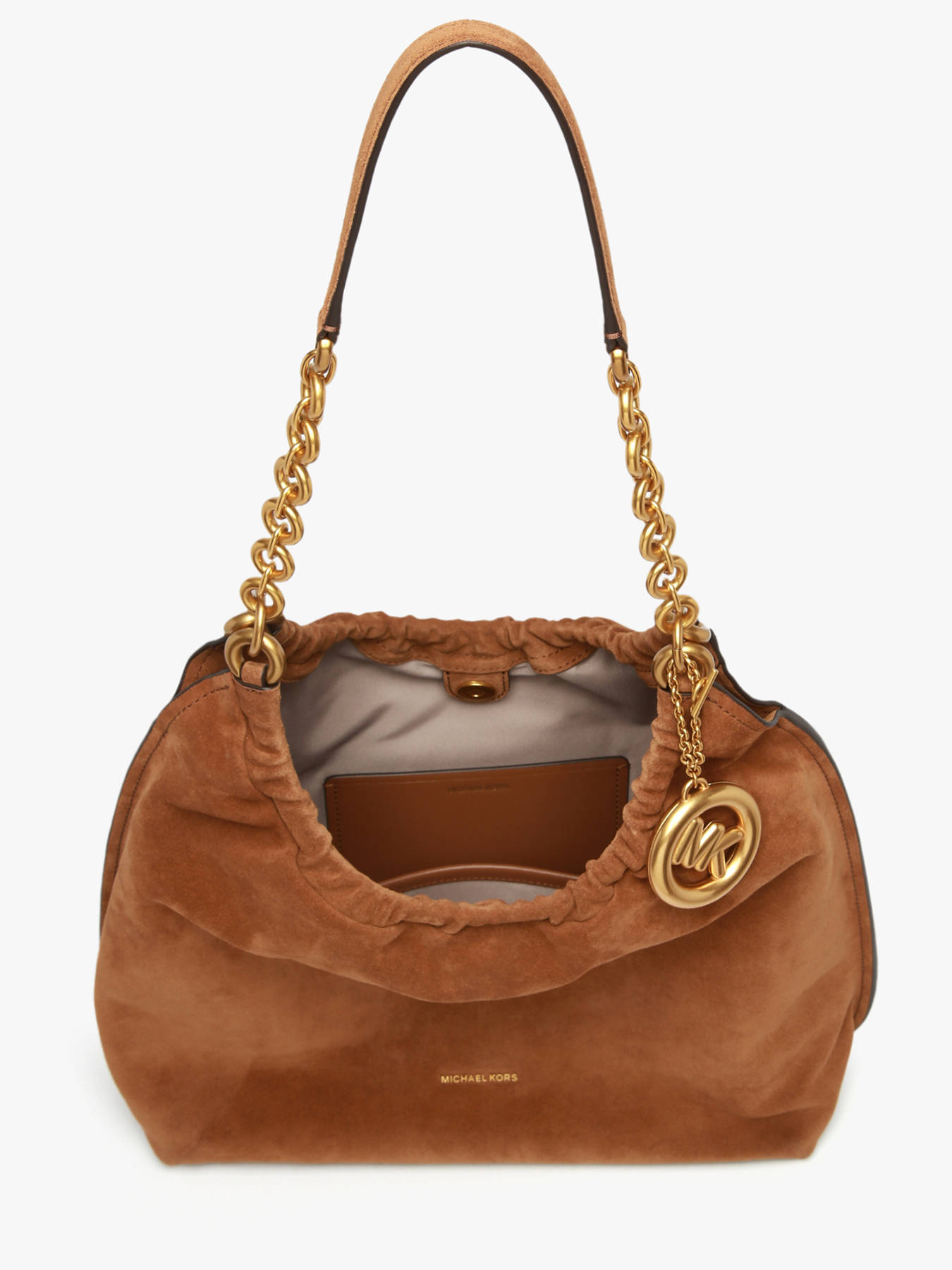 The INDIE MICHAEL KORS shoulder bag in calf leather combines timeless elegance with functionality. Its magnetic closure keeps your belongings secure while providing quick access to essentials. Inside, one main compartment and two slip pockets allow you to organize your items practically and efficiently. With a 33 cm handle height, it can be comfortably worn on the shoulder, combining comfort and style. Compact and structured, this bag adds a chic and sophisticated touch to any outfit, perfect for urban or elegant looks. The quality calf leather and refined finishes reflect MICHAEL KORS craftsmanship, making this bag a practical, trendy, and durable accessory. Versatile and refined, it perfectly complements your day-to-day activities and outings while keeping you stylish and organized, blending discreet luxury with everyday functionality.