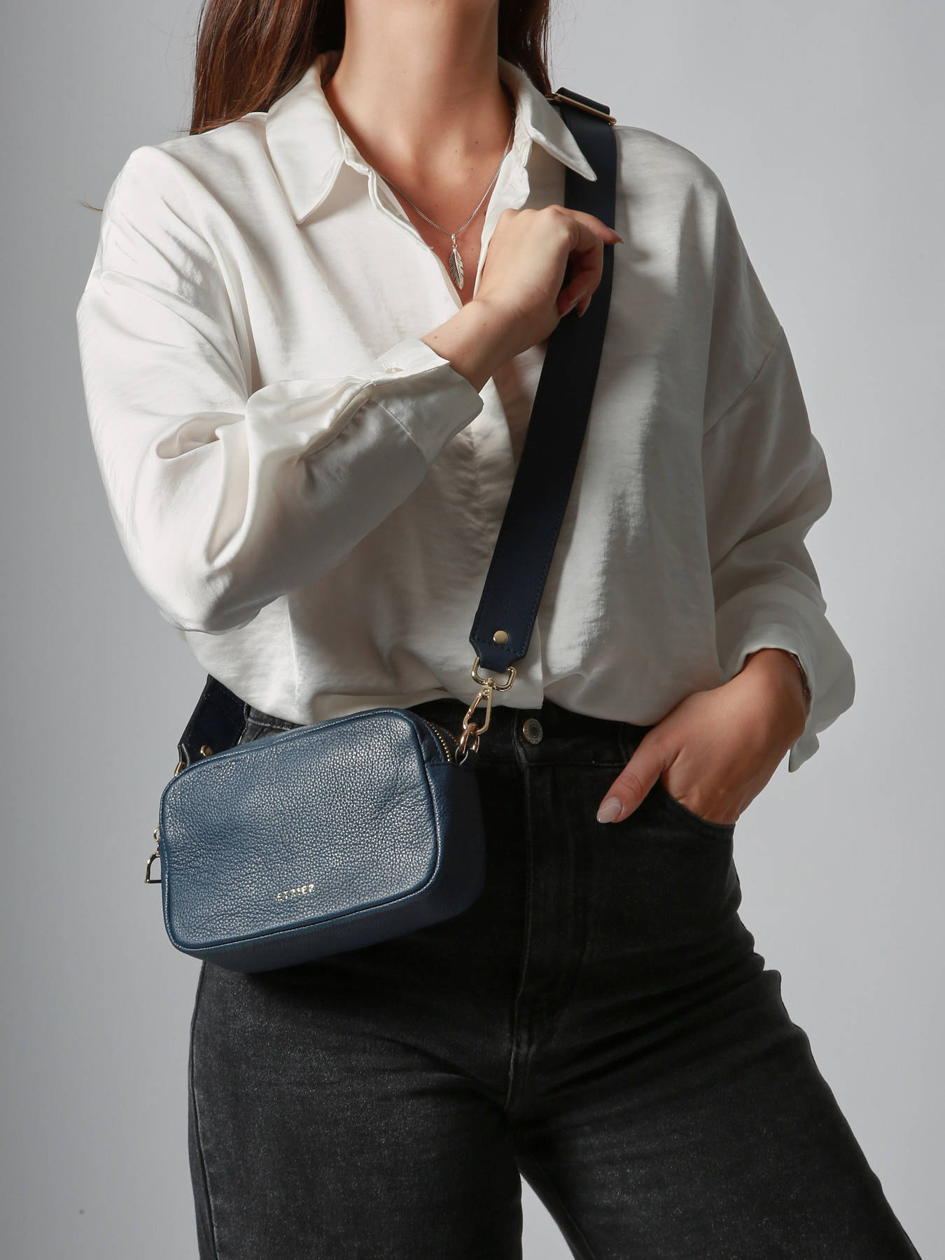 Crafted from grained cowhide leather, the camera bag shoulder bag from the TRADITION line by ETRIER perfectly combines elegance and practicality. Featuring a double zip closure, two compartments, a slip pocket, and a zipped pocket, it offers optimal organization for everyday use. Its removable and adjustable shoulder strap adapts to all your preferences, for wearing on the shoulder or crossbody. Enhanced with gold-tone details and the signature stirrup, this structured and timeless model is an essential piece for your wardrobe.